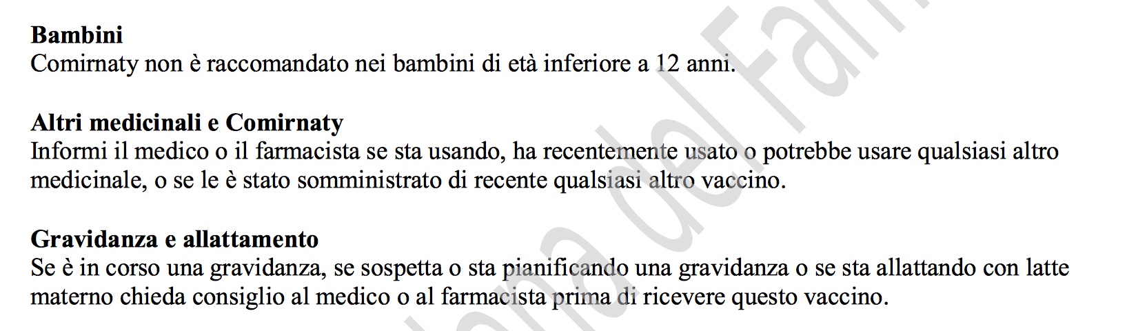 Foglio illustrativo del Vaccino mRNA Comirnaty BioNteh/Pfizer trovate scritto a pagina 3.